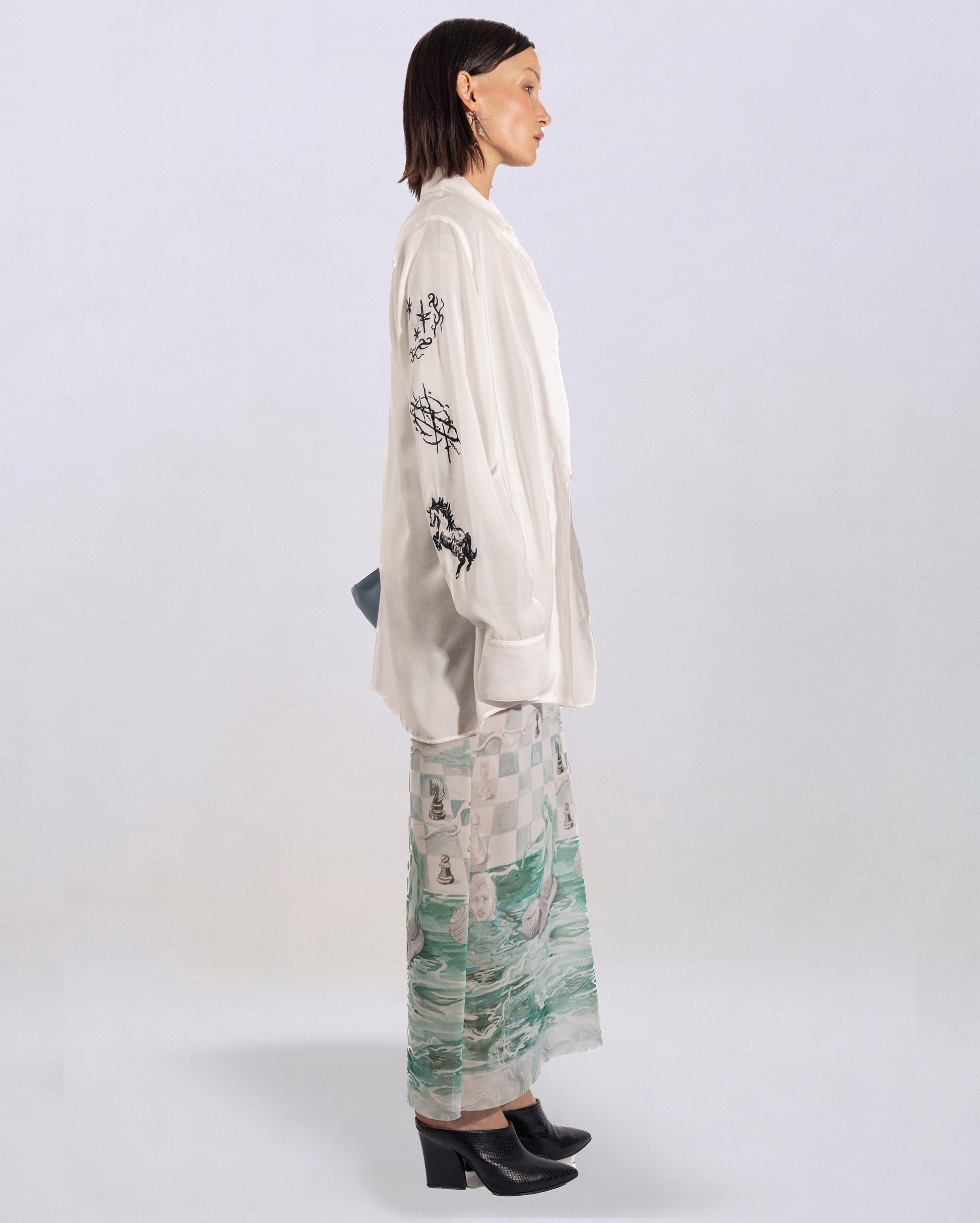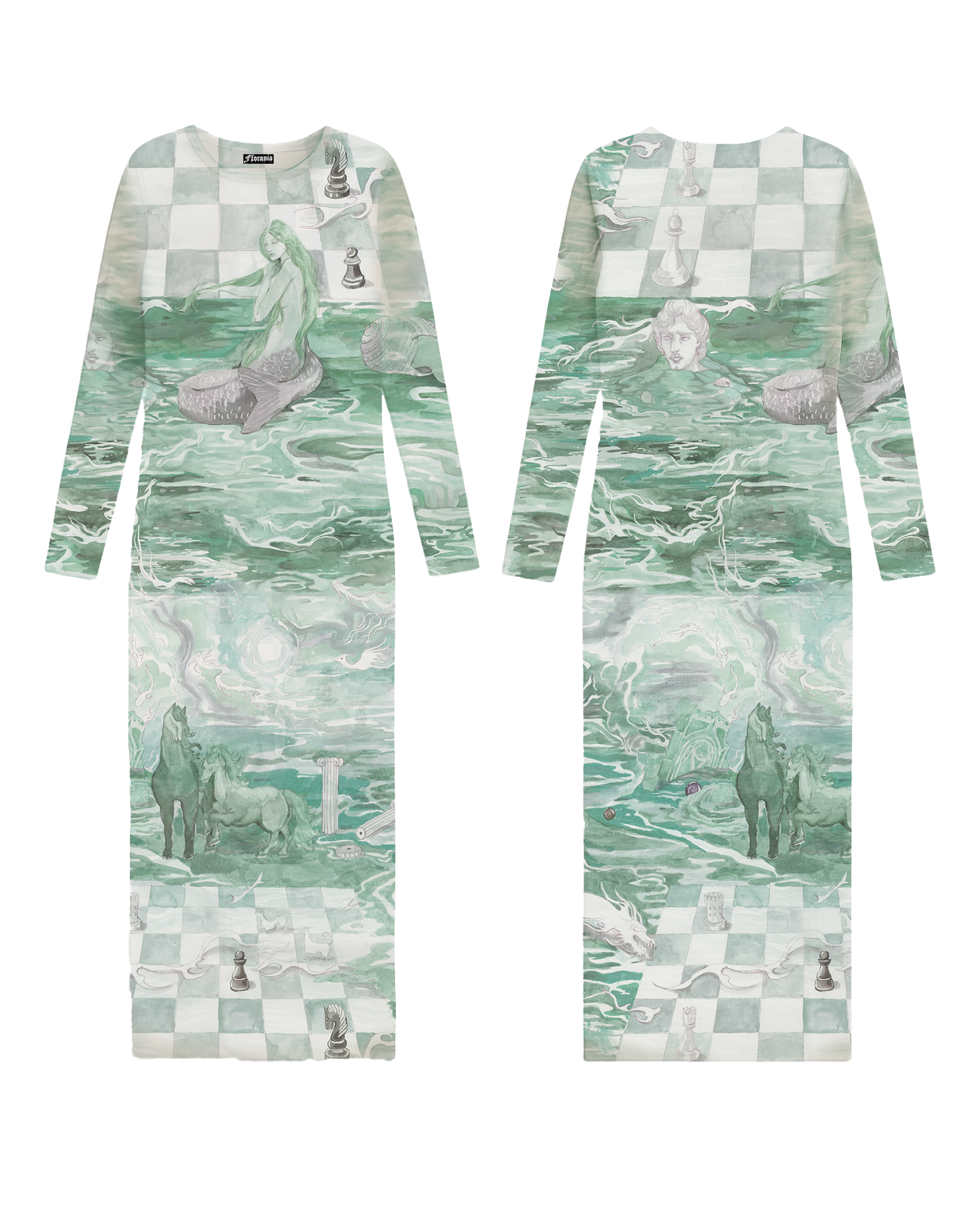 Dora Aqua long sleeves dress, manufactured in Italy with original Florania designs.