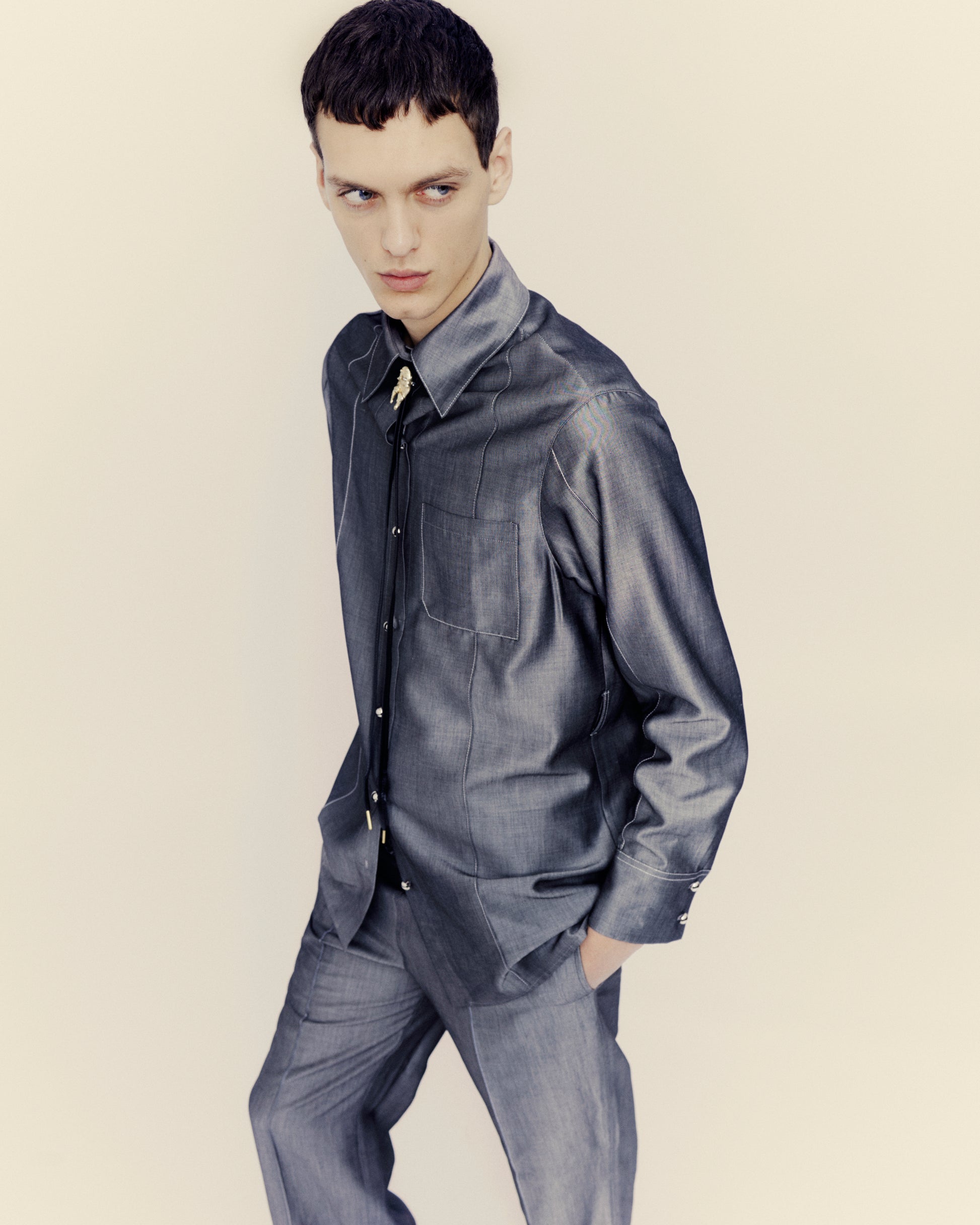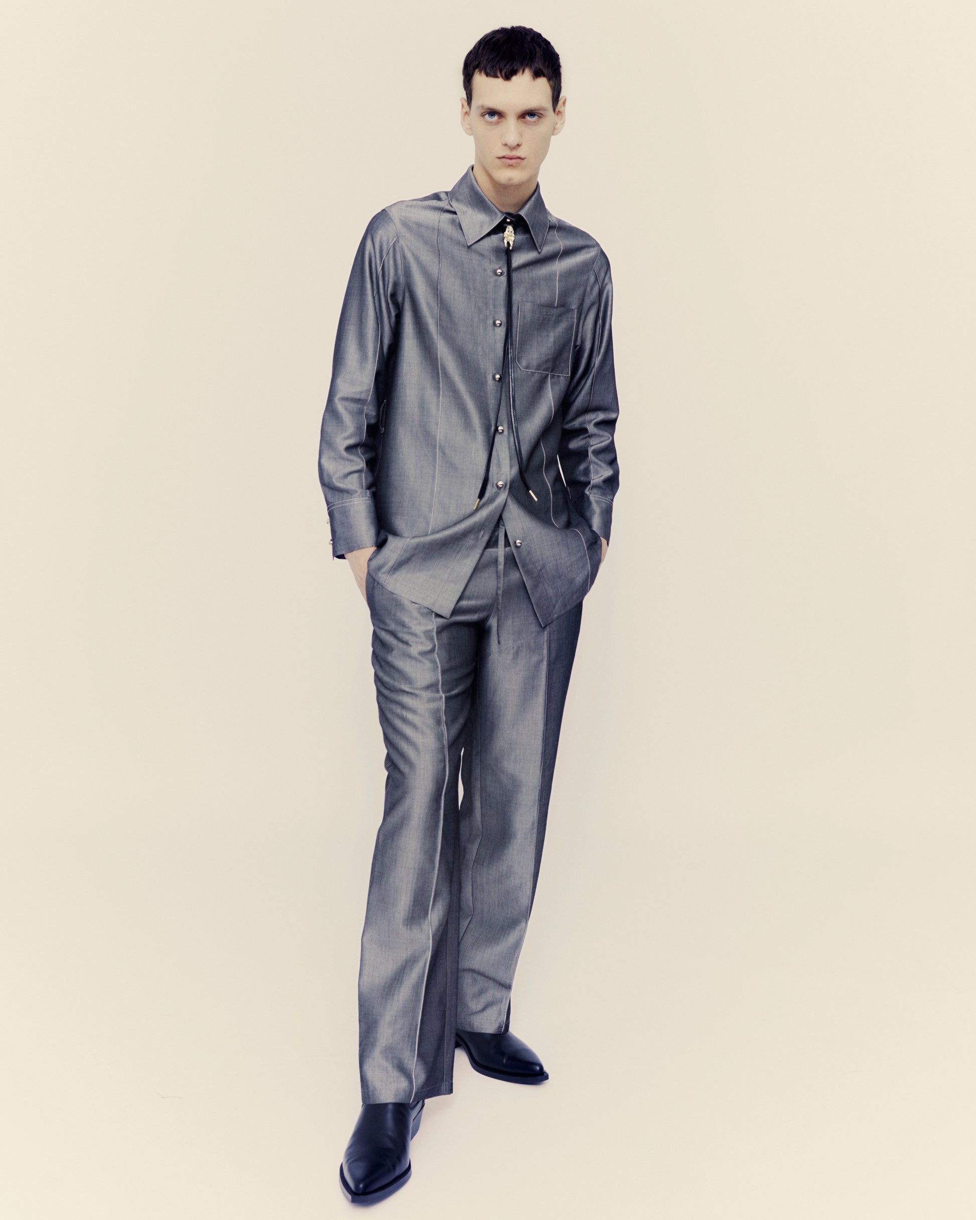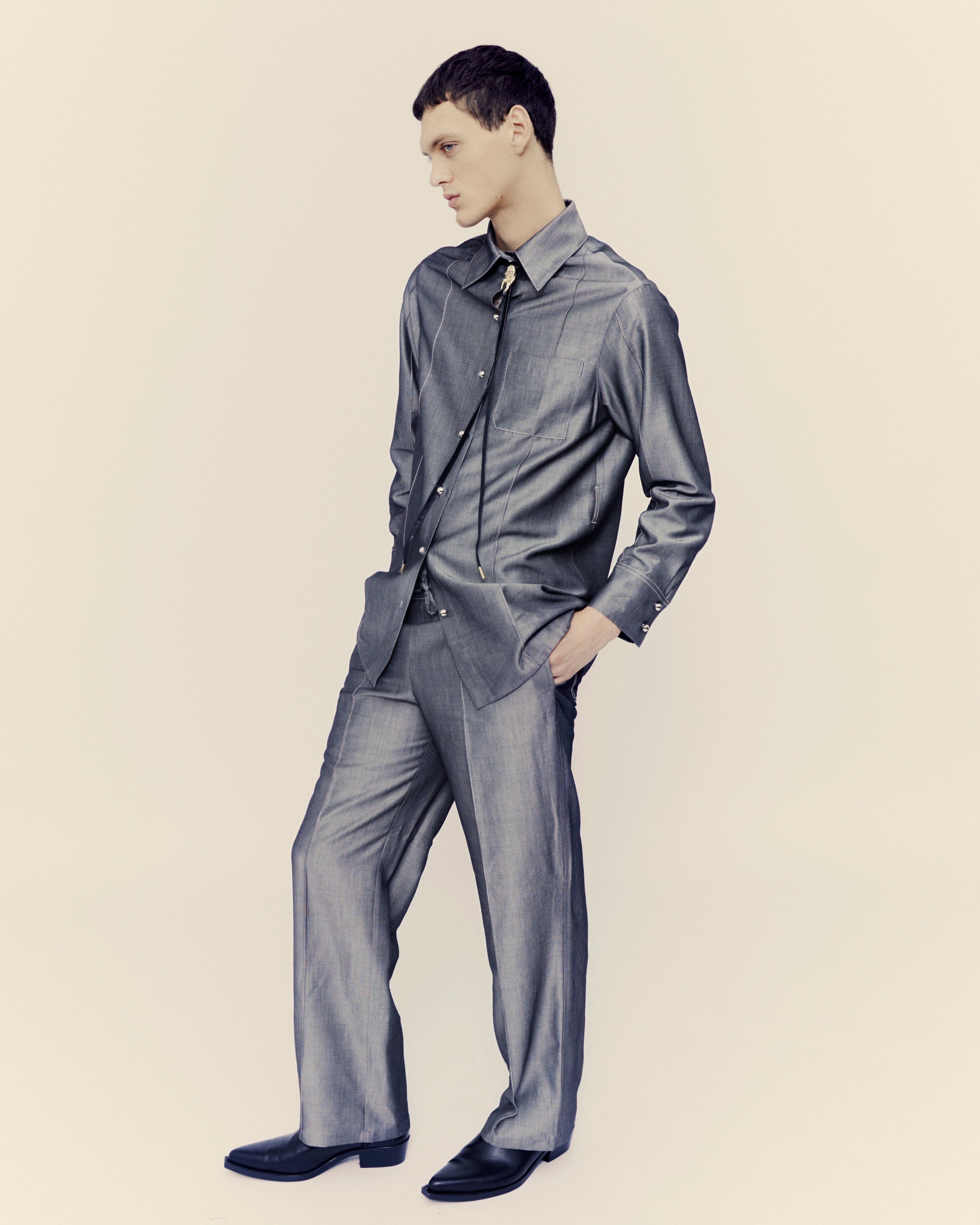 In stock. Soft trousers with coulisse, genderless fit. In light wool blend. Handcrafted by our production partner in Mantua (Northern Italy). Sourced locally.