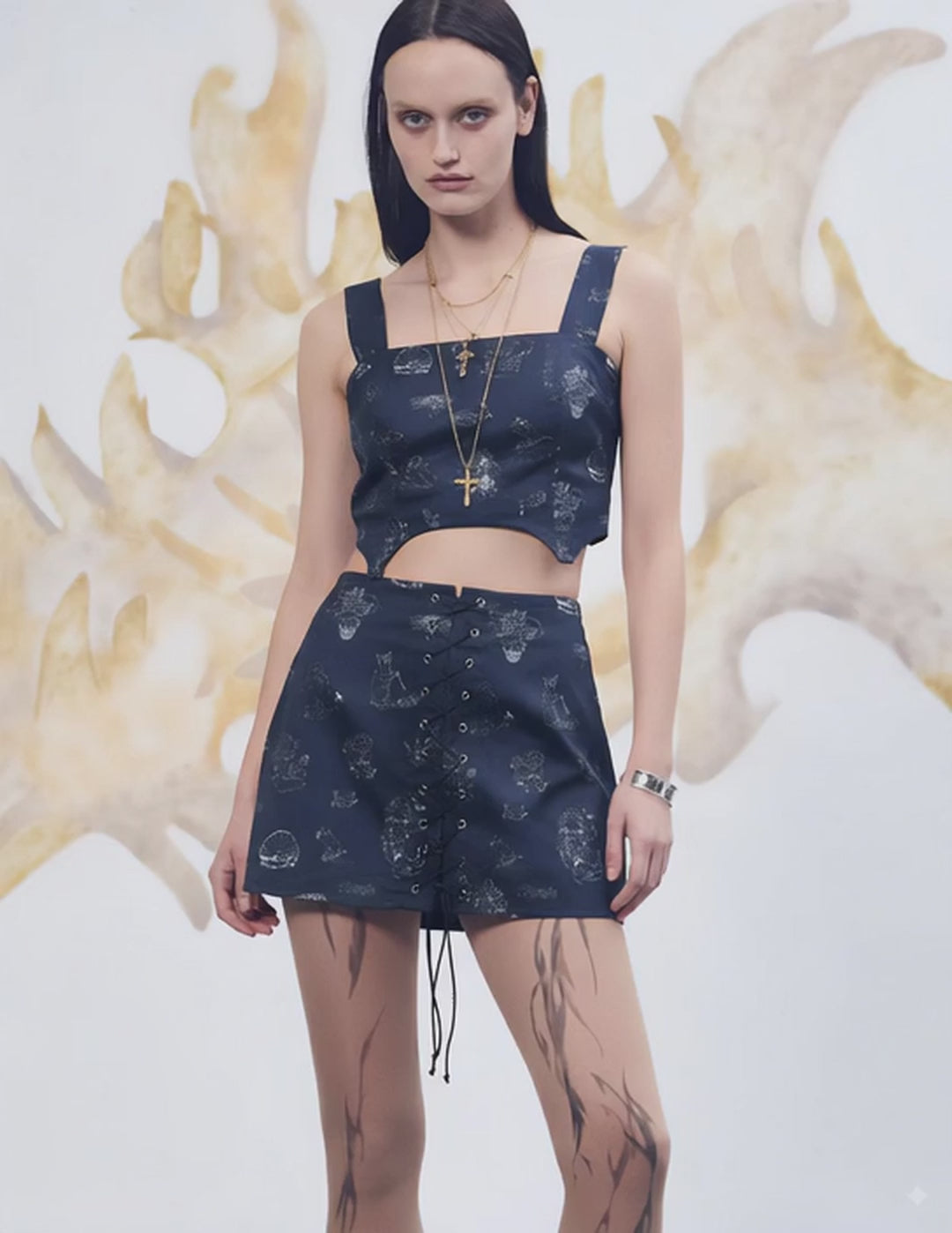 'Grimm's Fairytales mini skirt'. Made to Order, Upcycled Cotton & Viscose Mini skirt.