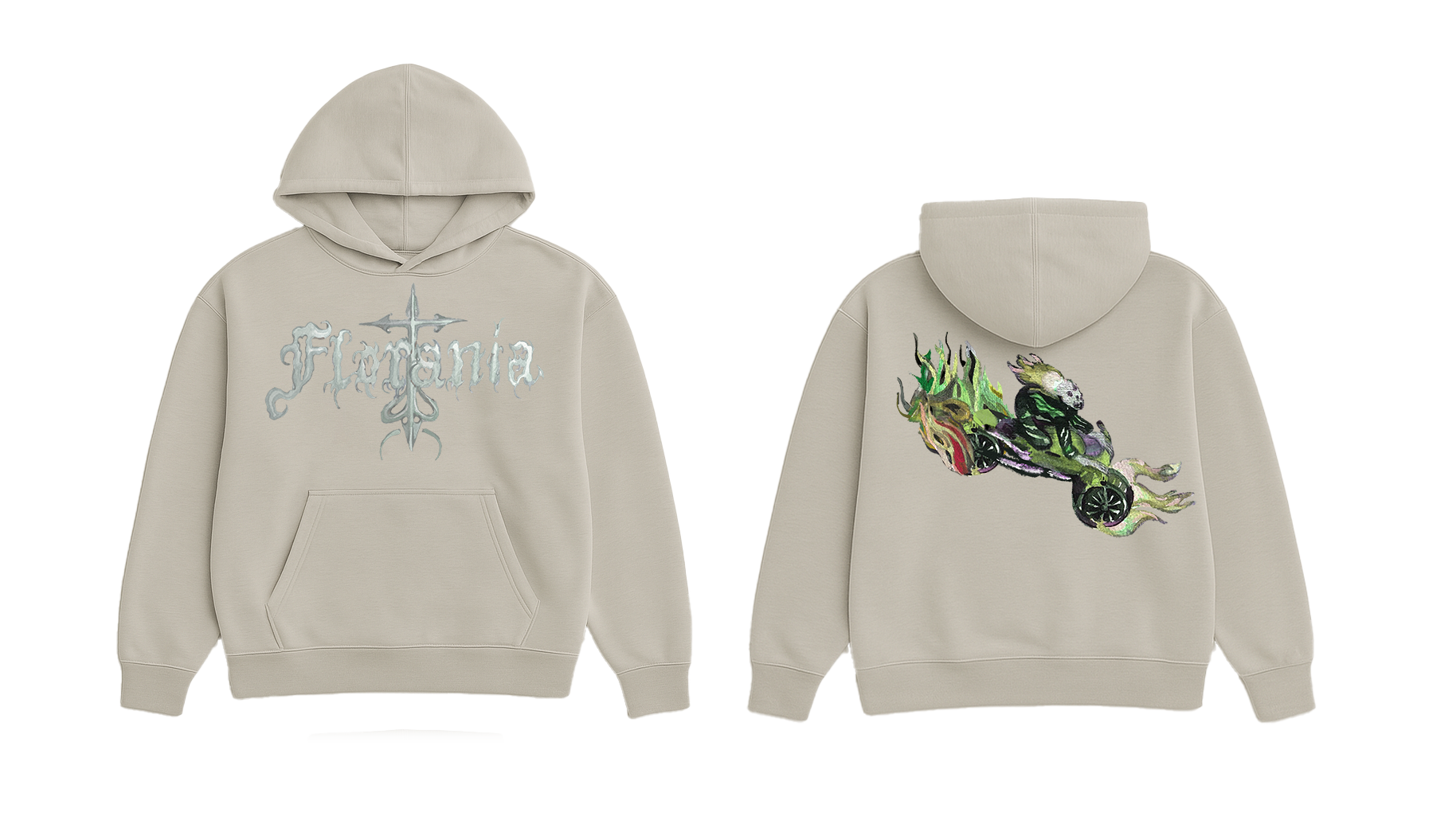 100% Organic cotton hoodie with Florania's Hell Rider original illustration. In stock.ย