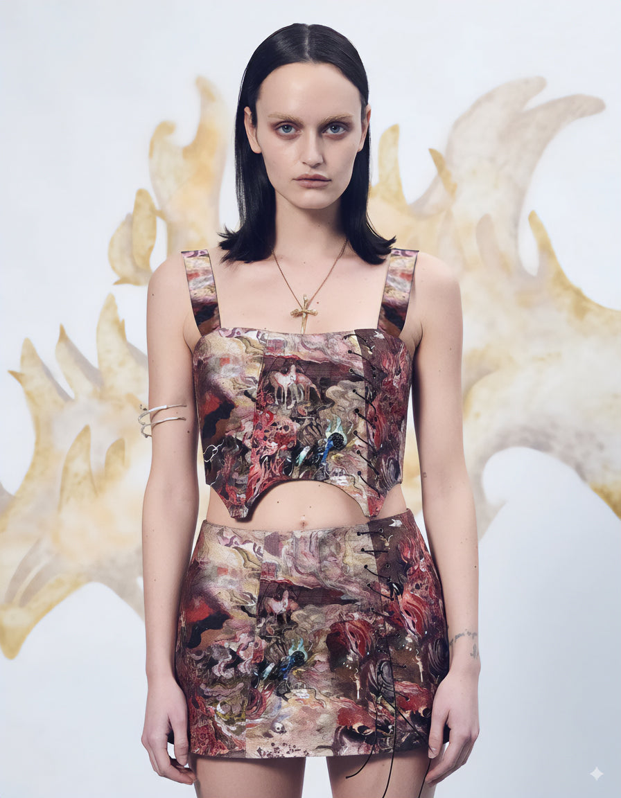 'Metal mini skirt'. Made to Order, Upcycled Cotton & Viscose Mini skirt.