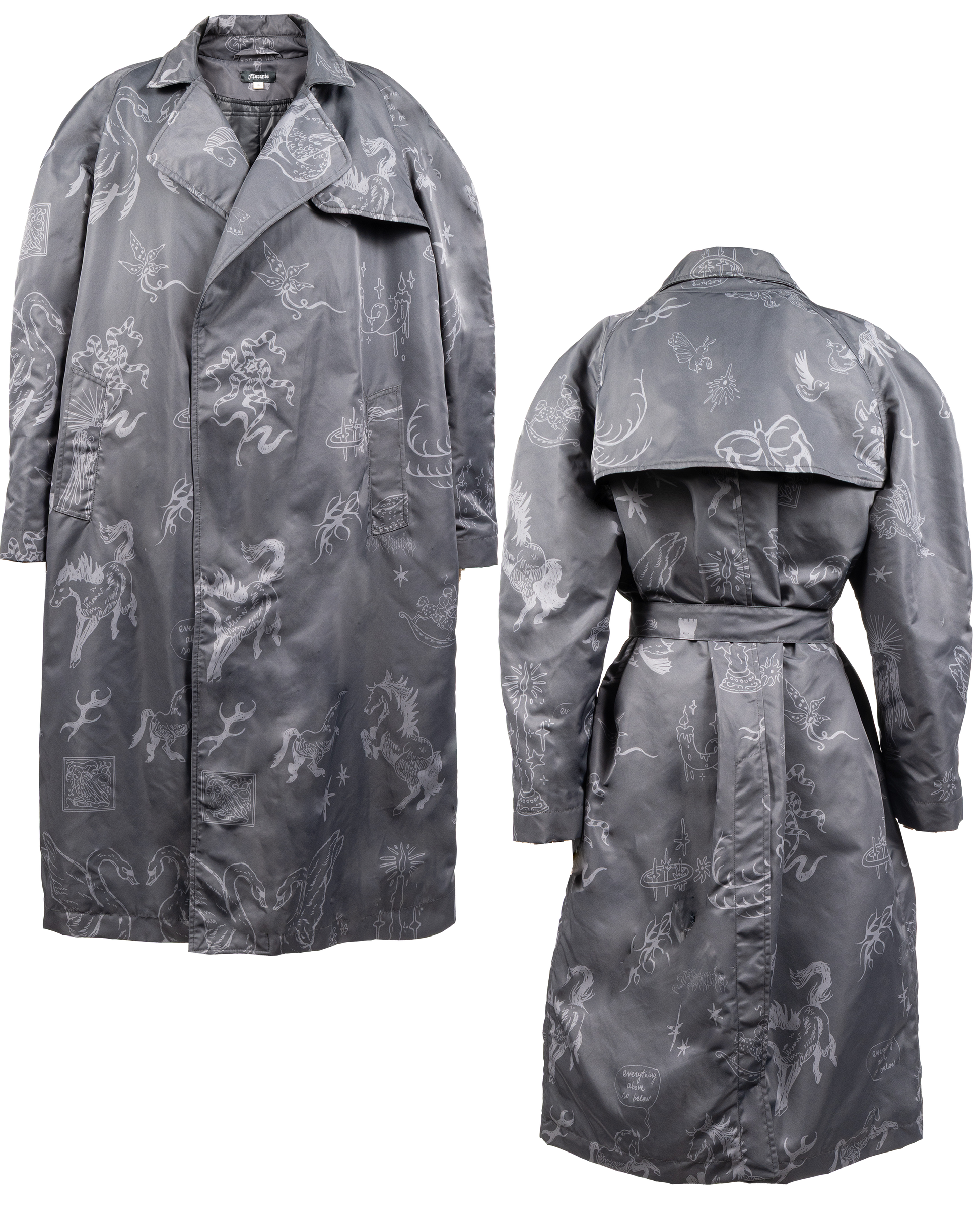 Padded trench coat with Florania's original tattoos sketches. Handsewn in our ethical partner laboratory in Mantua (northern Italy).Β