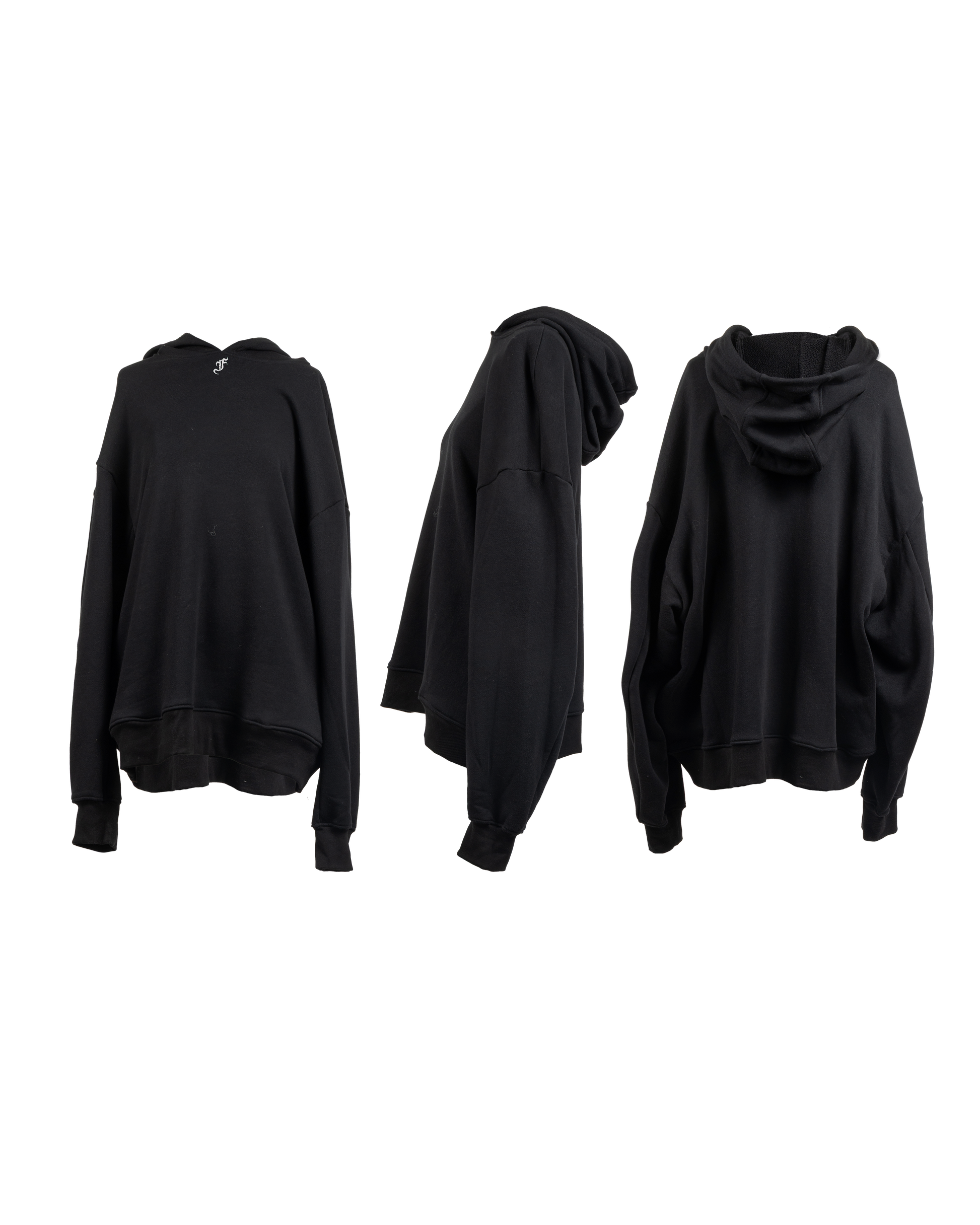 Oversized hoodie in soft cotton, middle-heavy weight. Locally sourced and handcrafted, decorated with a Florania laser-cut monogram logo as a pendant in the middle center.Β