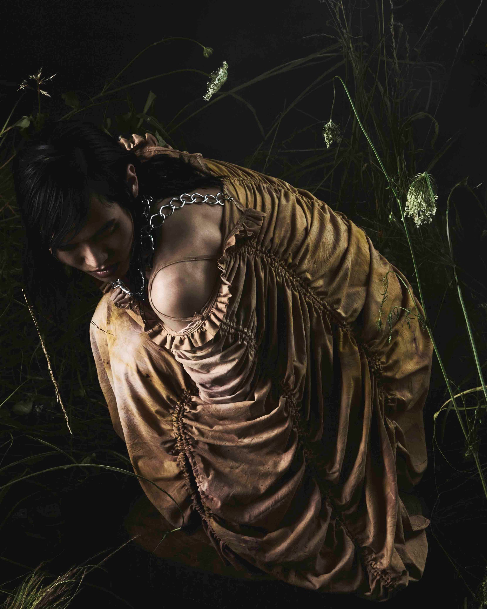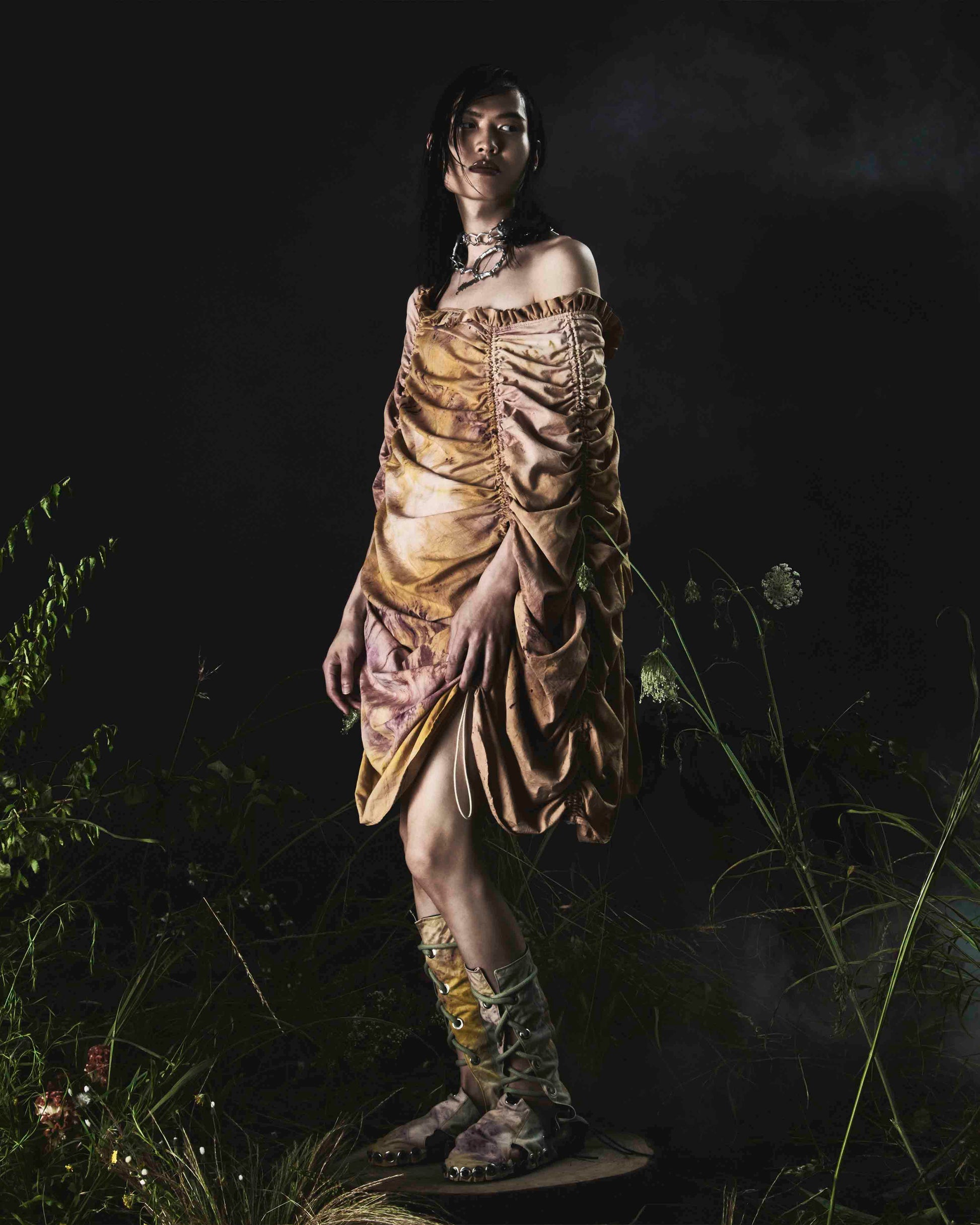 Natural dyes (vegetables dyes): organic cotton with coffee grounds.