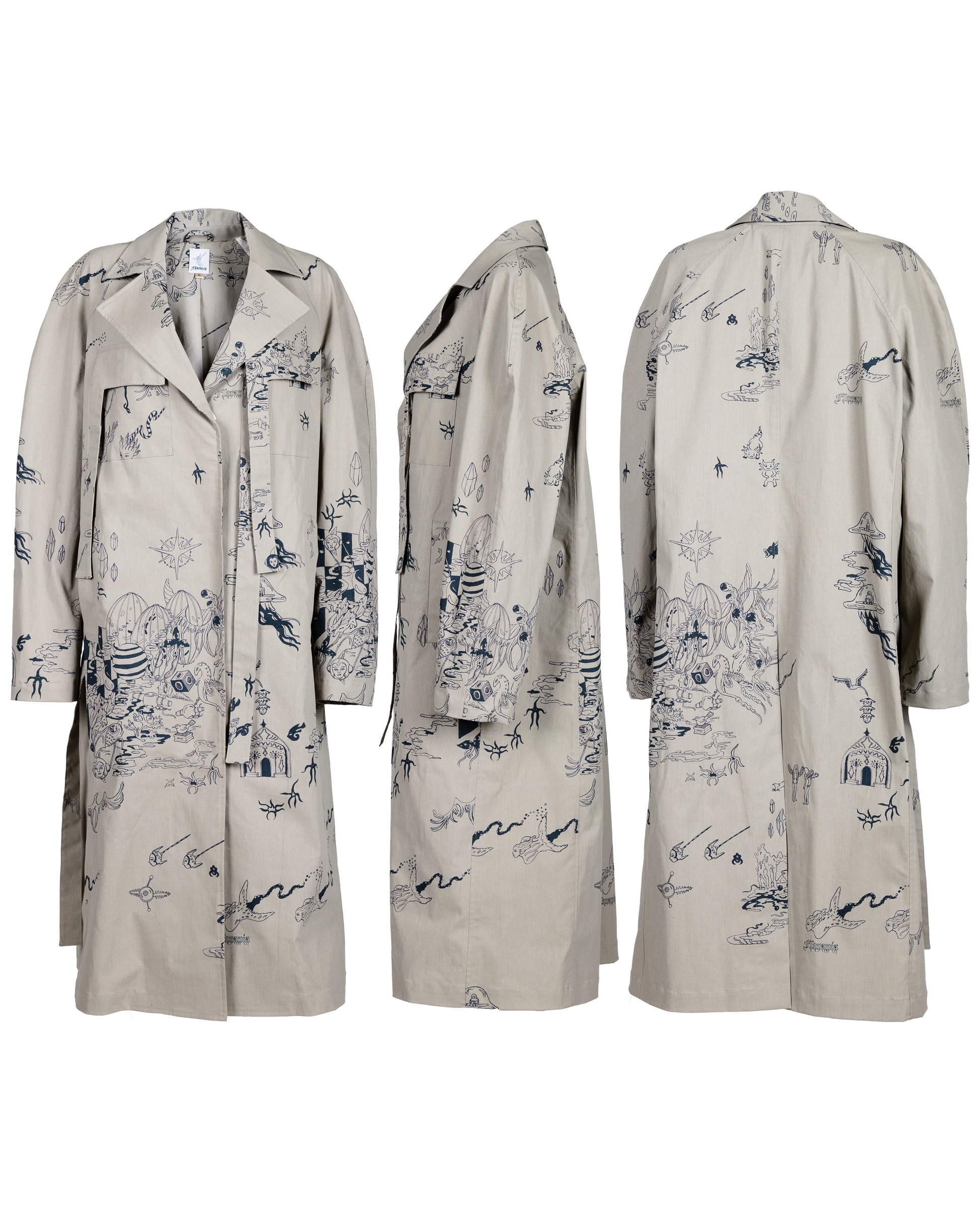 In stock. Oversize trenchcoat in water repellent in recovered cotton twill. Handcrafted by our ethical production partner in Mantua (Northern Italy). Sourced locally. 80% Cotton, 20& Polyester.