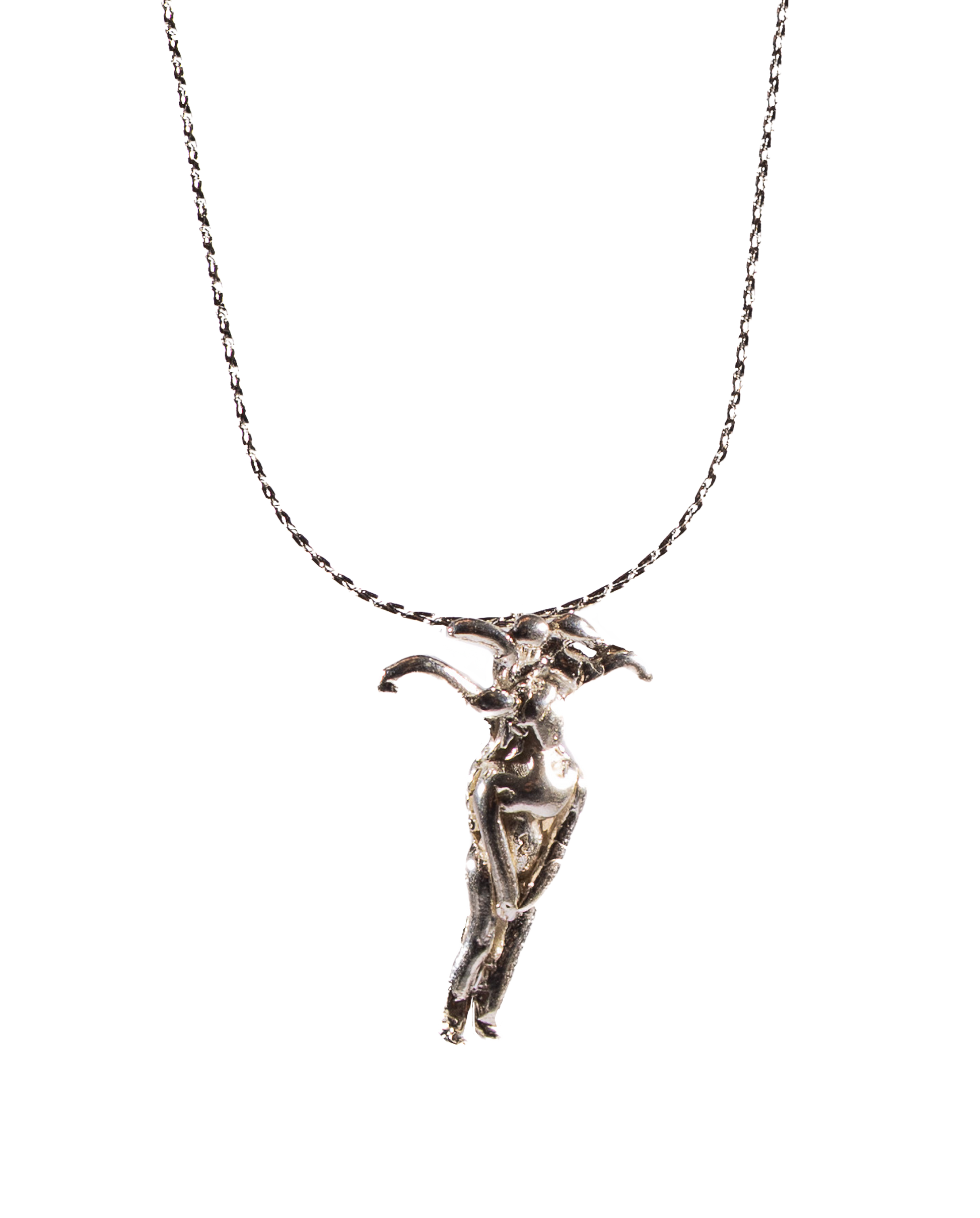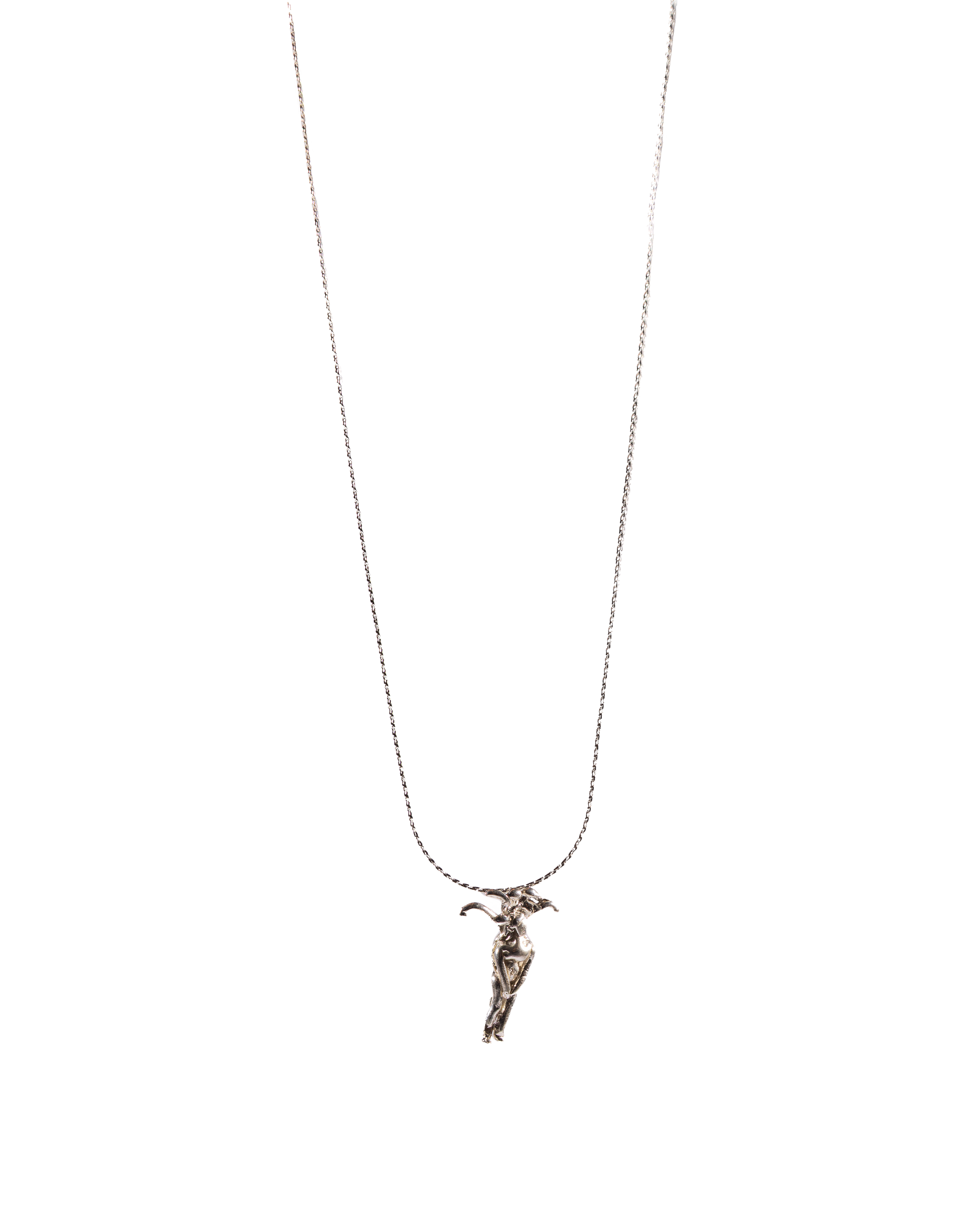 Thin chain collier with silver Mandrake pendant, inspired by ancient talismans and Fantasy litterature. Each piece is slowly crafted in Italy, cast in bronze and plated with Silver alpacca.