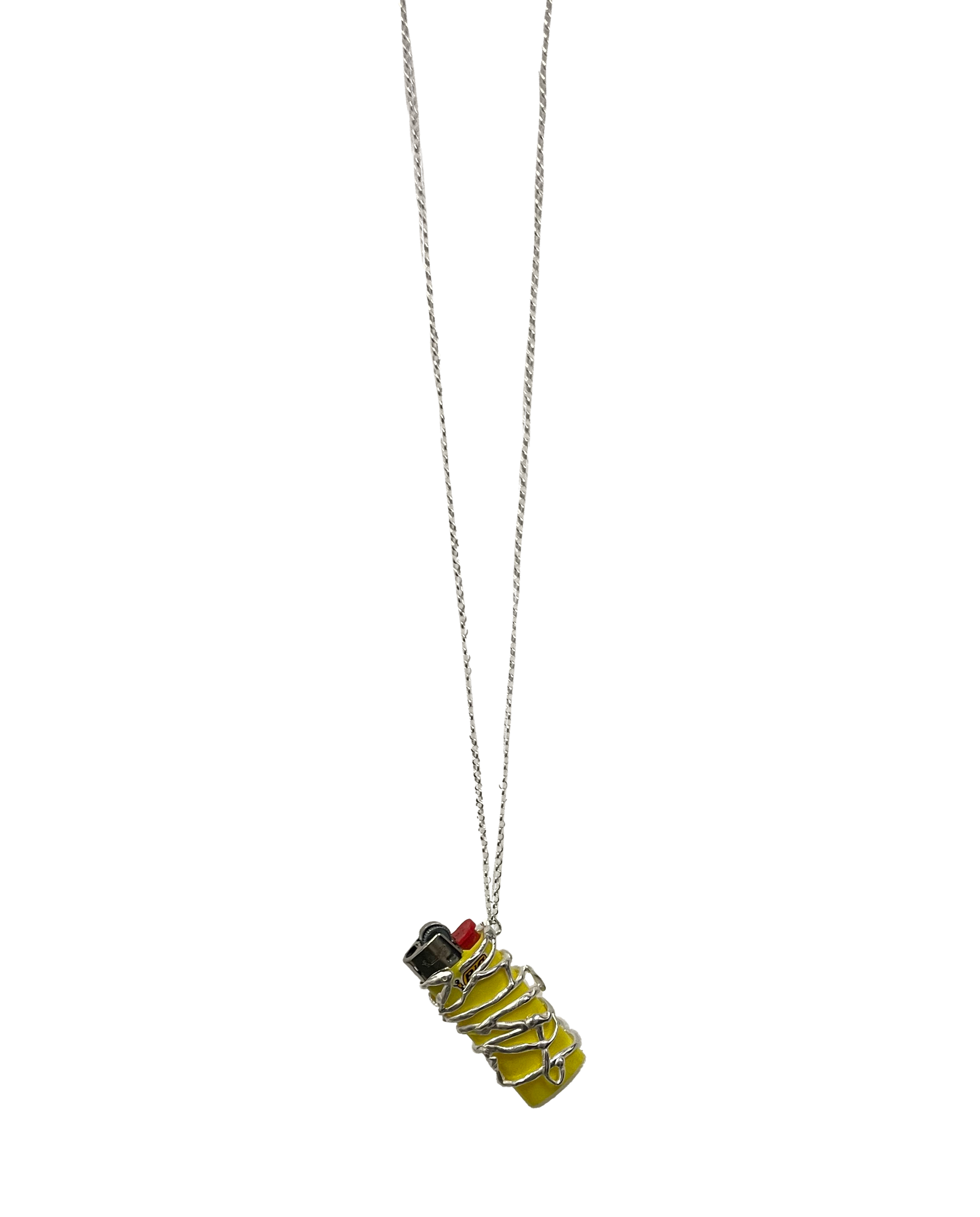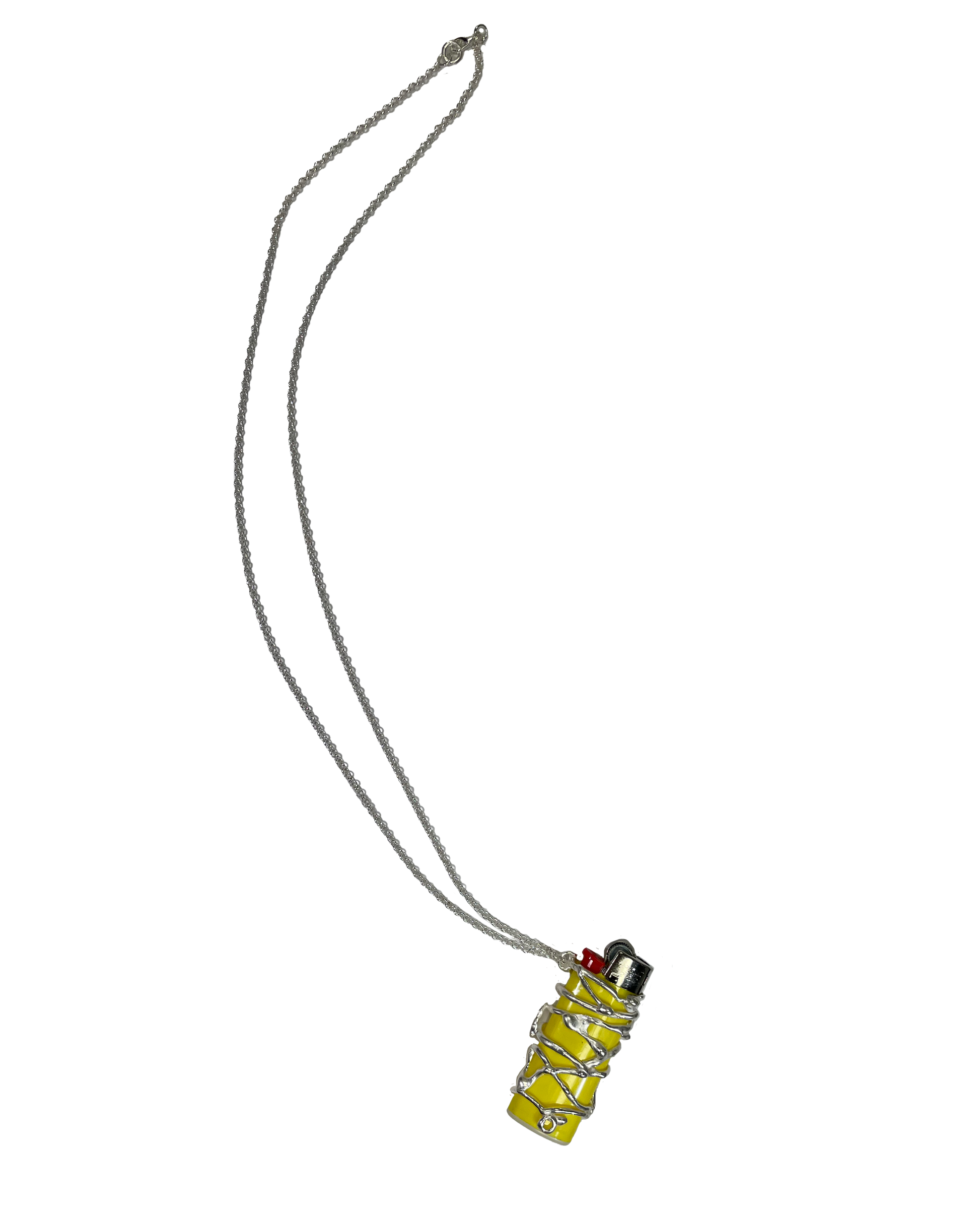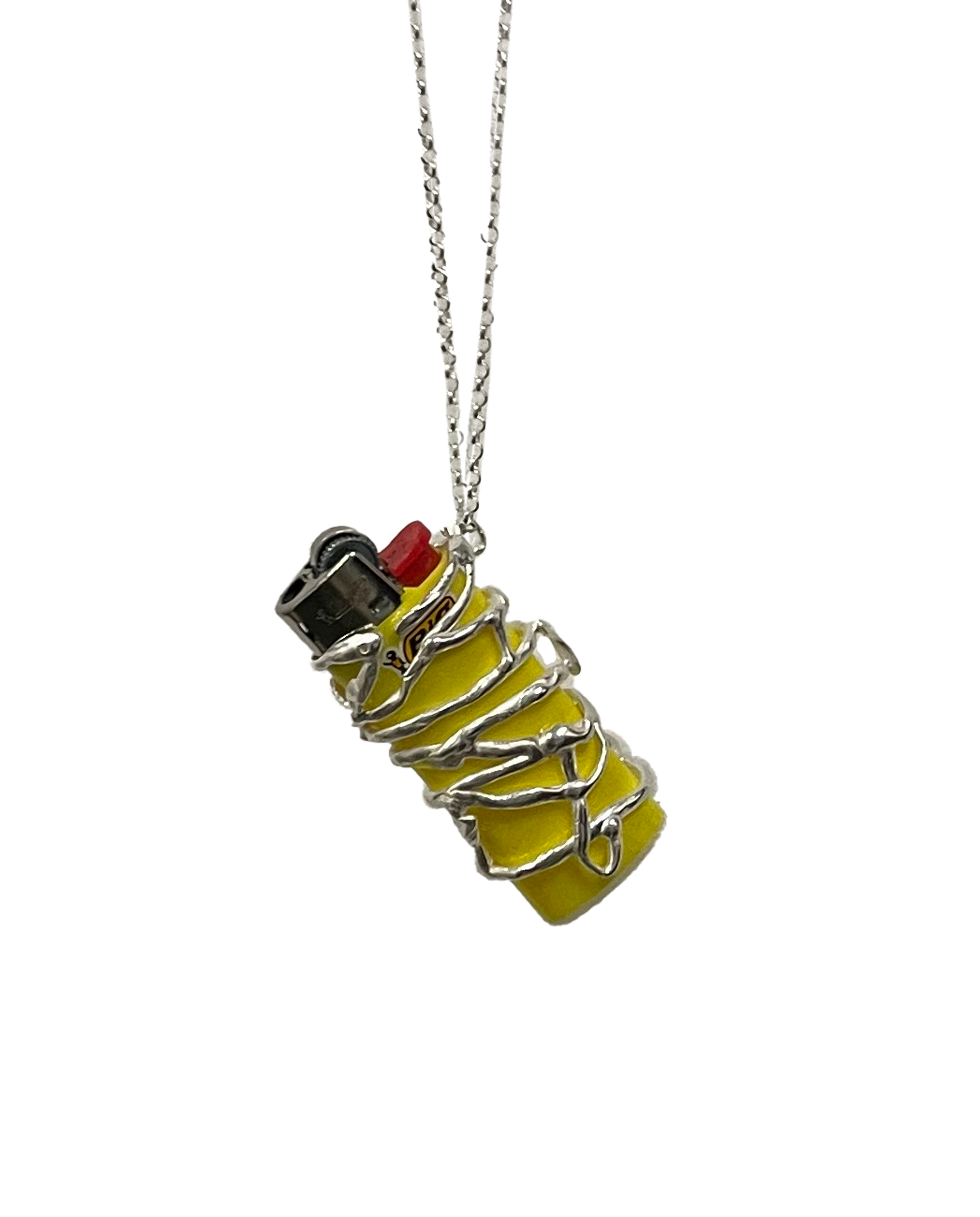 A silver-pleated bronze lighter holder inspired by the shape of ancient relics.